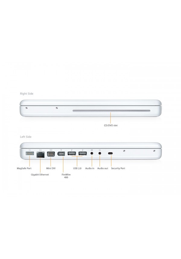 The new MacBook now comes with 1GB of memory standard and larger hard drives for the entire line perfect for running more of your favorite applications and storing growing media collections.